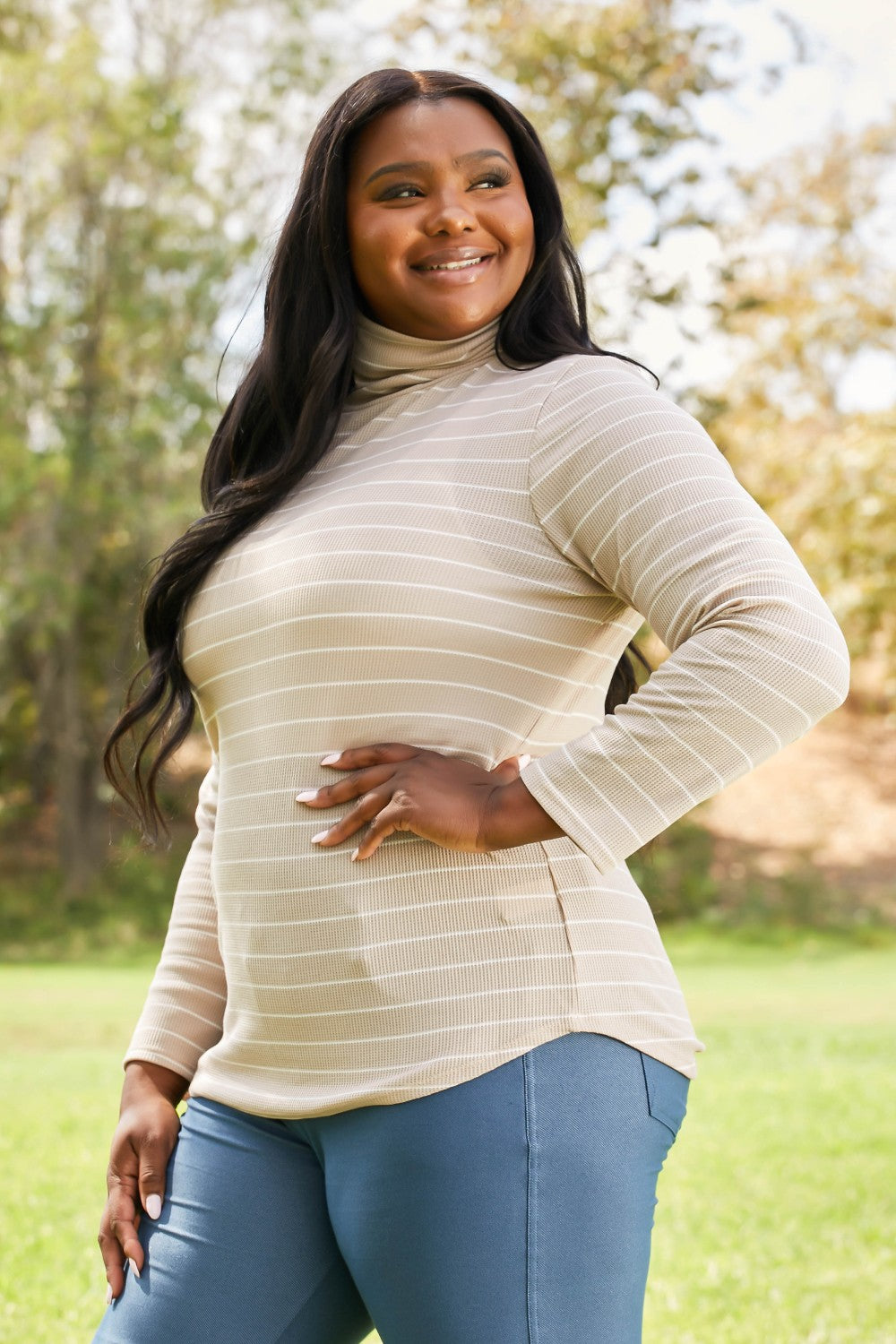 CY Fashion Since When Full SIze Striped Long Sleeve Turtleneck Top