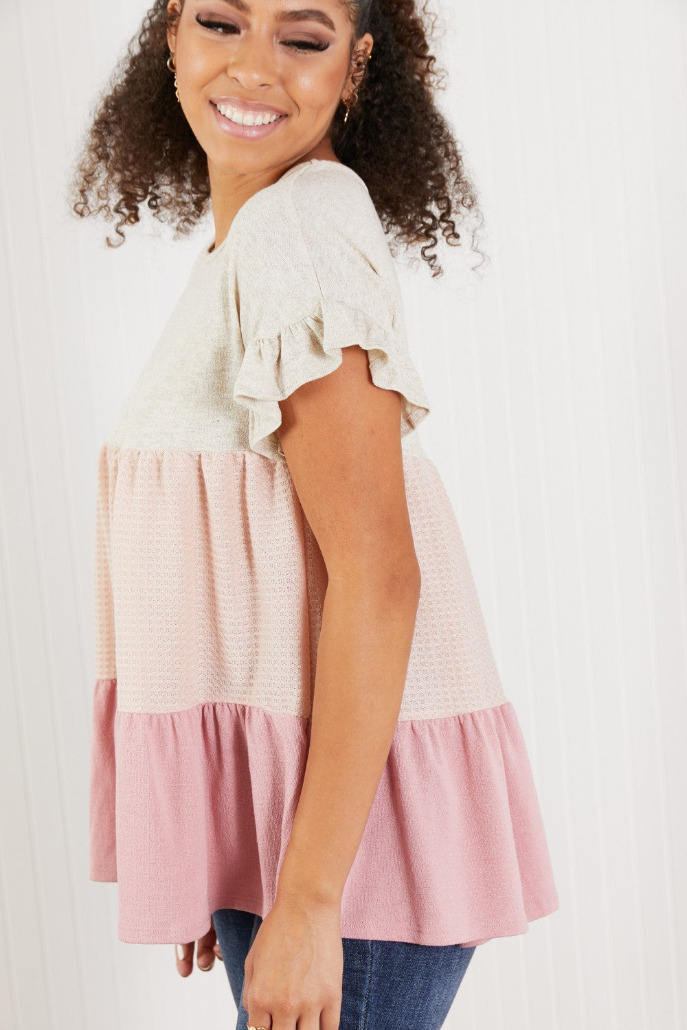 Hailey & Co Weekend Special Color Block Tiered Babydoll Top