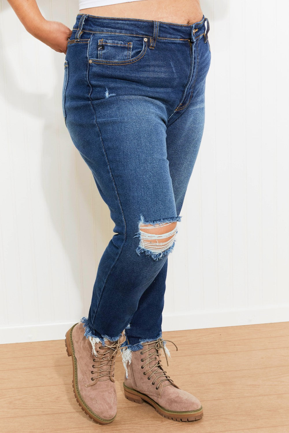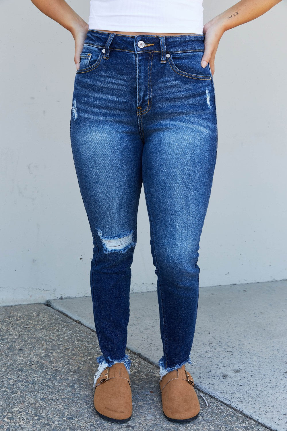 Jeans that will take your look to the next level effortlessly? Yes, please! These cropped skinnies have the cutest details from some distressing on the leg to a destroyed hem. Plus, they have a high rise that will accentuate your waist!