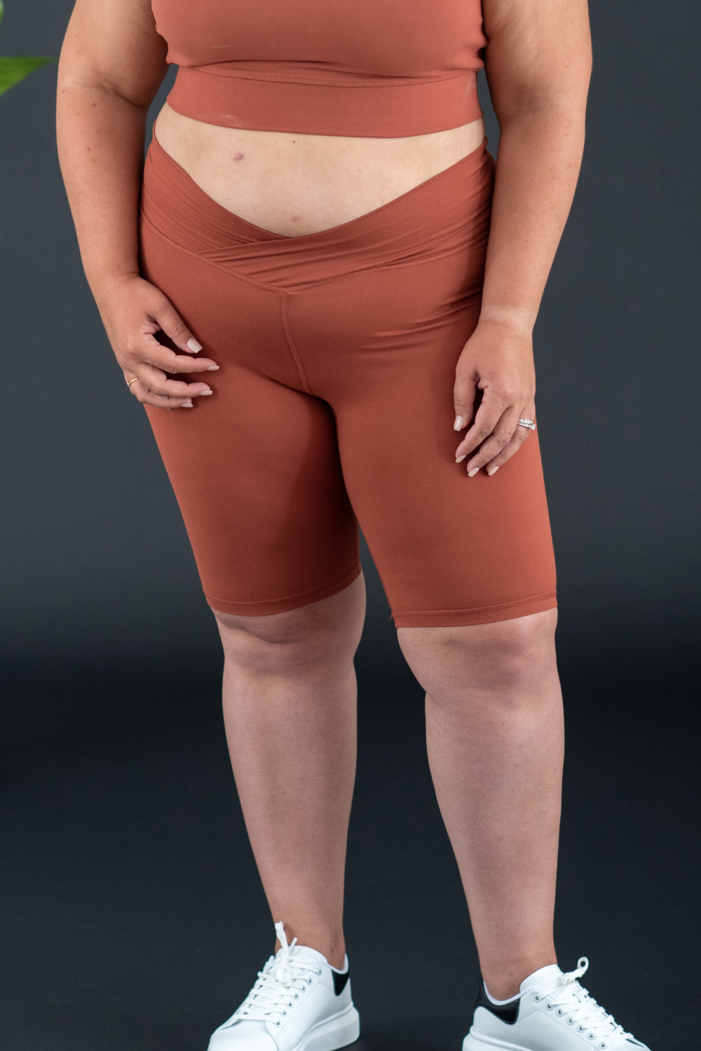 These biker shorts feature a cute overlapping crisscross design at the waist. Pair with our Rae Mode Nonstop Full Size Cutout Detail Sports Bra and head to yoga class!