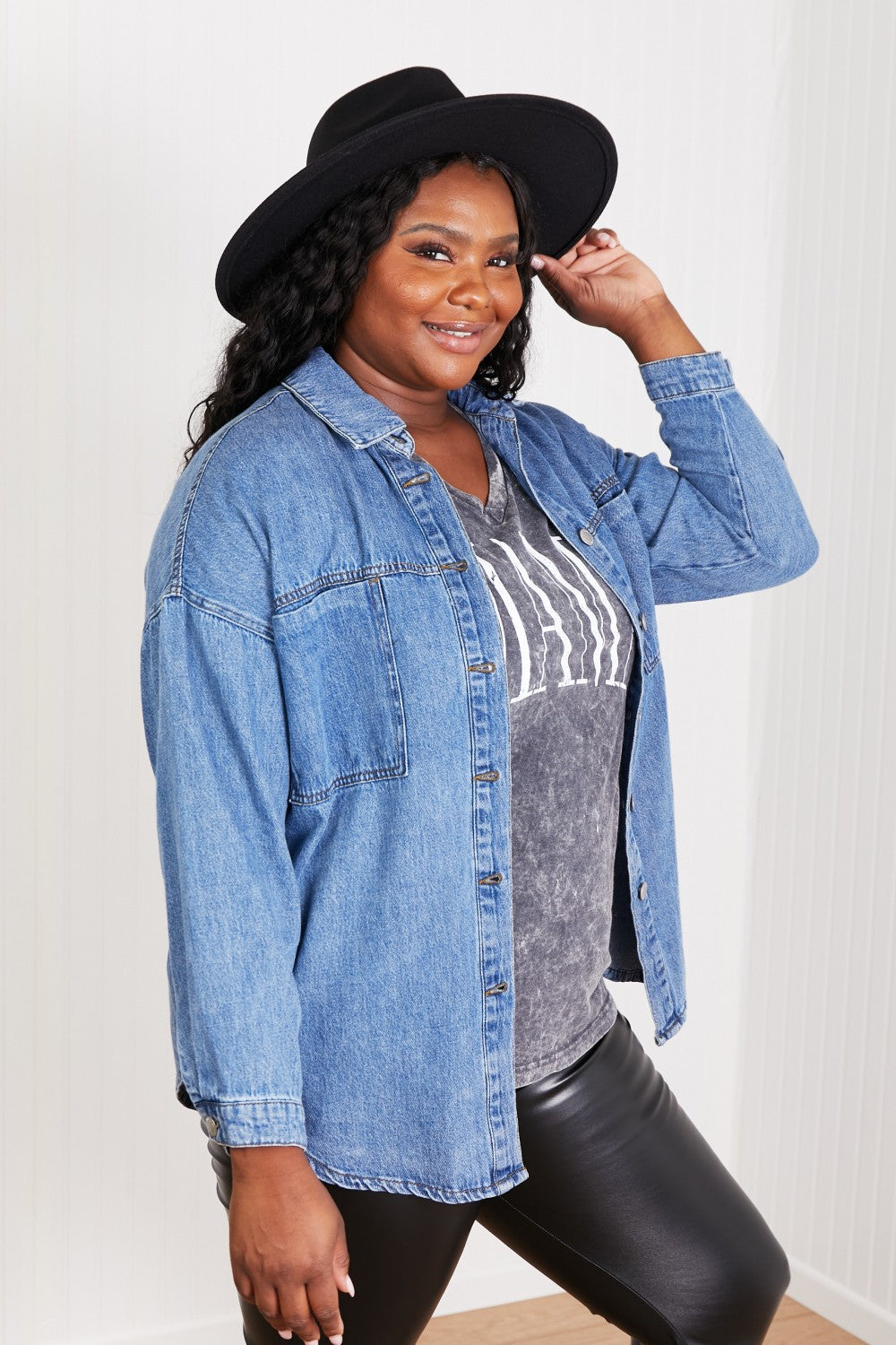 Love the denim shacket with a curved hem? You better hurry and grab this one before it's too late! Made with sturdy woven denim, this button-down jacket will get so many compliments!