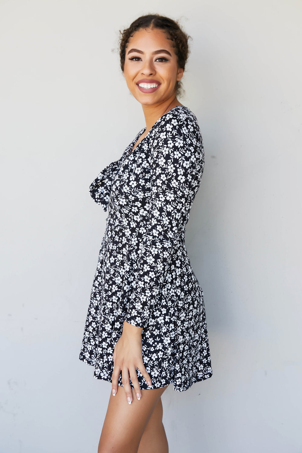 This can't-live-without fun and floral dress is perfect for date nights or everyday outings. A deep V-neckline makes this a little more grown-up, as does the cutout detail in the front. Long sleeves are contrasted by a short skater hem that brings the flirt to this flirty number, which features built-in shorts.